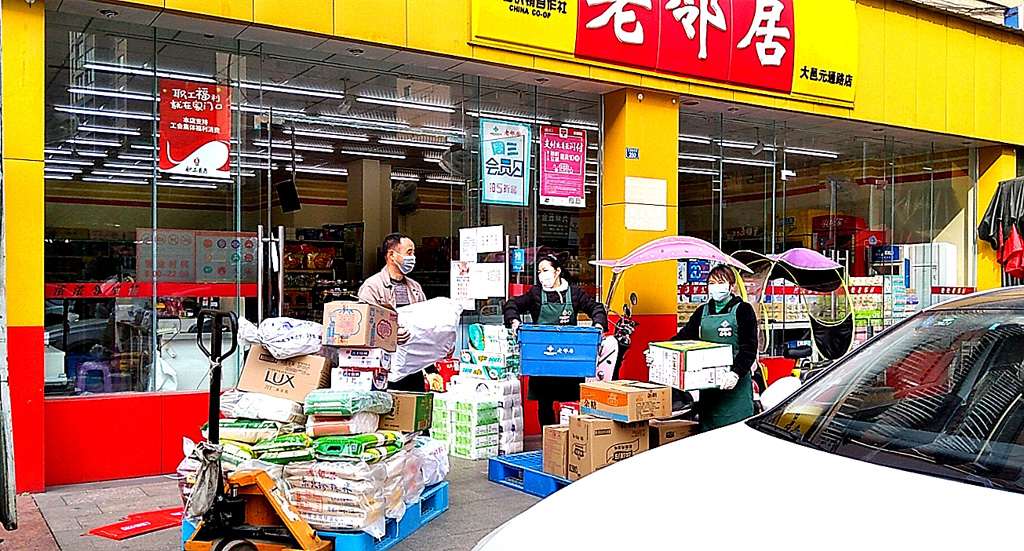 因附近出現(xiàn)疑似病例,銀木城市生活店附近各小區(qū)均實行了嚴防嚴控措施,給小區(qū)居民生活和購物帶來了諸多不便。店長了解到相關情況后迅速組織店員召開會議研究解決方案,積極與社區(qū)和小區(qū)物管中心協(xié)調(diào)溝通,將老鄰居通過微信群、QQ群、電話接單、送貨上門服務方式廣為宣傳,分店在接單后立即分工合作,記錄訂單、選備商品、電話聯(lián)絡顧客并免費送到小區(qū)門口,大到幾袋米、小到一根蔥,分店每日送貨上門訂單量近萬元,導致門店工作量大增,但每當看到顧客收貨后露出滿意微笑,她們認為,再多付出都是值得的!