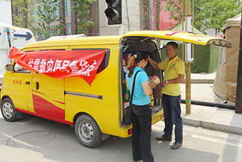 蘆山地震蘆山縣災(zāi)區(qū)開行流動(dòng)售貨車