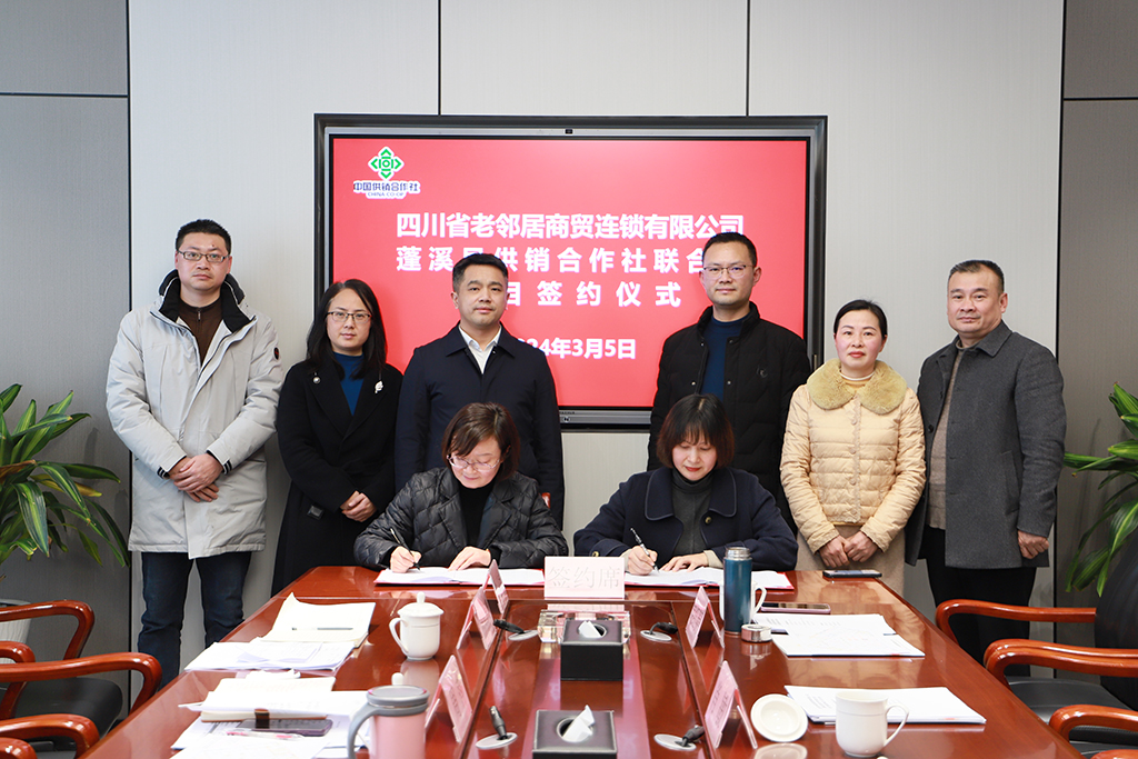 3月5日下午,蓬溪縣供銷社為農(nóng)服務(wù)綜合平臺建設(shè)合作項目座談會暨簽約儀式在省老鄰居公司總部舉行。公司黨支部書記、董事長許宏勇,副總經(jīng)理周萍,蓬溪縣供銷社黨組書記肖敏,理事會主任周麗君共同見證簽約儀式,省老鄰居公司及蓬溪縣供銷社有關(guān)負責(zé)同志參加。