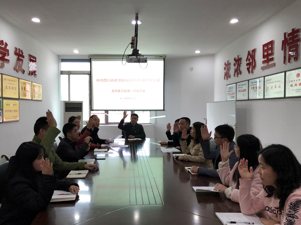 2020年4月3日,四川省老鄰居商貿(mào)連鎖有限責(zé)任公司黨支部成立大會(huì)暨第一次全體黨員大會(huì)在公司總部七樓會(huì)議室隆重召